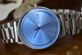 This beautiful timepiece features a stainless steel case with a Sky Blue Sunray dial. The Japanese Quartz Movement is the pioneer in the world of watches because of the precision that this mechanism uses to keep time.  The stylish bracelet is made of 316L high grade stainless steel. It is lightweight ensuring that the watch rests comfortably on your wrist. Watch has quick release function to easily style it with another band.